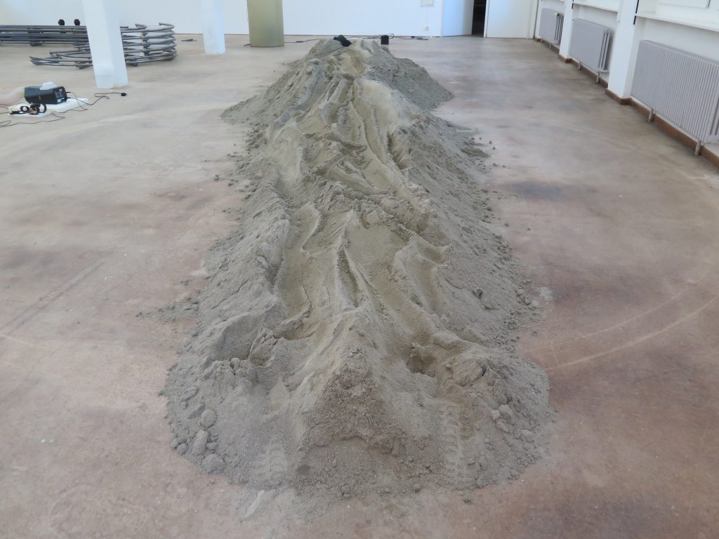Geht man vom Tiefparterre die Treppe nach oben, wird der Kunstraum betreten: eine weite blosse Fläche, die von Germann mit sicheren Gesten, Gegenständen und Geräuschen in eine theatrale Bühnen verwandelt wird. Ein in sich geschlossenes Schienensystem mit Kurven und Biegungen liegt im Raum aus. 23 Filmdollyschienen, 2,80 m hoch und 54 cm breit. Neben den Schienen finden sich Maschinen und ein Golffahrzeug im Raum. Der Künstler selbst aktiviert den Prozess, in der Reaktion der Objekte aufeinander sowie durch die eigene Einwirkung setzt Germann den Kreislauf in Gang. Die Performance wird durch elektronische Musik von Sergio Araya begleitet, der bereits in der ersten Version von «Die Stral» mit Germann zusammenarbeitete und der nun eigens für den Kunstraum eine neue Tonfolge komponierte. Klang und Bewegung konzentrieren sich zu einer industriellen Soundperformance. Die Konstellation zwischen den Objekten wird aktiviert, die sich daraus ergebenden Spannungen unterliegen einem beständigen Weiterleben.