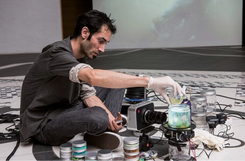 Die Videos von Hicham Berrada situieren sich an der Grenze von Kunst und Wissenschaft. Sie bestechen durch alchimistisch anmutende Filmbilder, die einer aufbrausenden farbigen Landschaft gleichen.