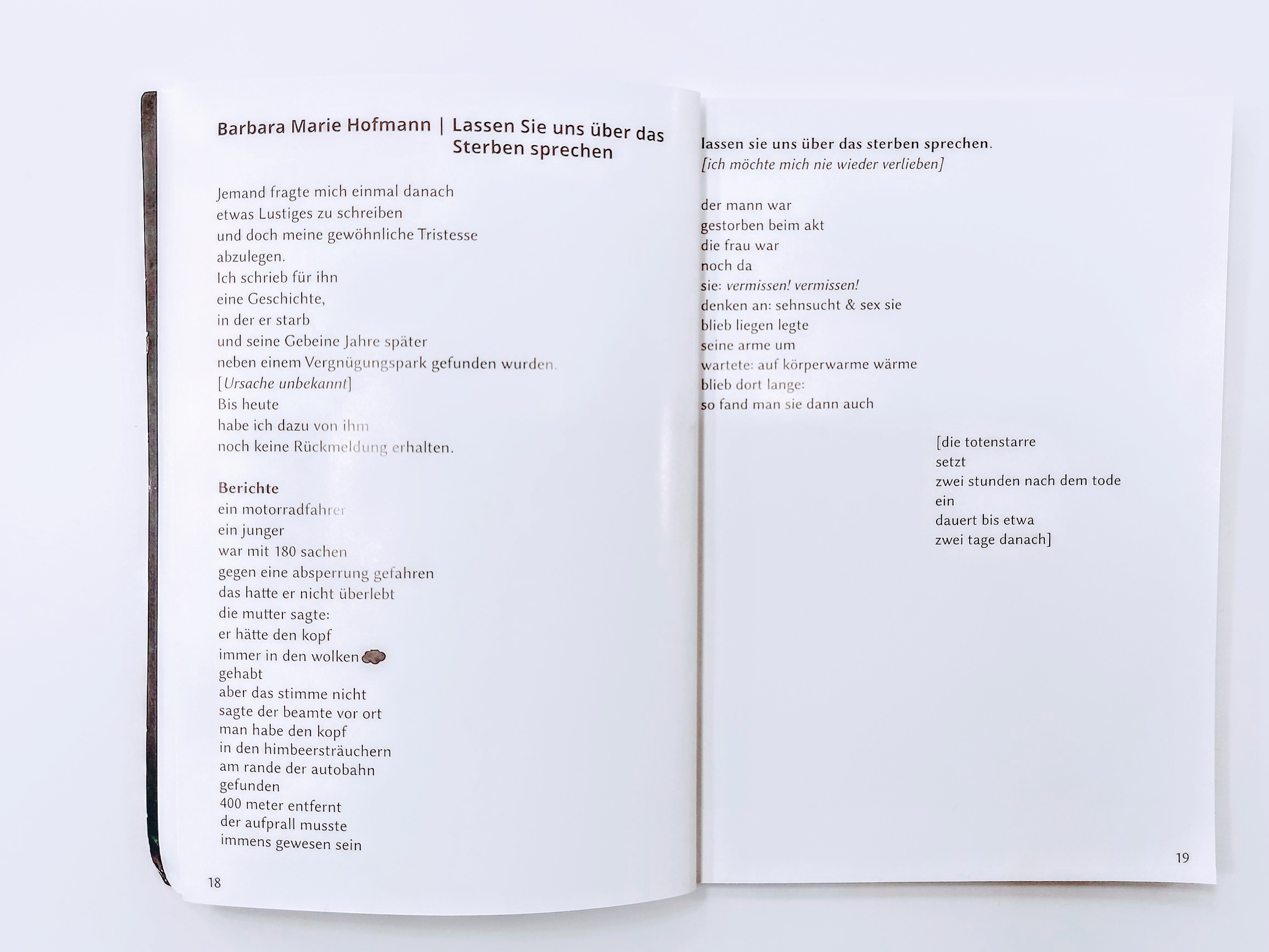 Rosa Anschütz und Jan Wagner, Mohamed Badawi, Anna Laura Bach, Alexander Binder, Fabian Vorragend, DAIF und bordeaux lip, Veronika Fischer, Michelle Hanselowski, Christof Heppeler, Laura Maria Heppeler, Toby Hoffmann, Barbara Marie Hofmann, Jessica Jurassica, Alisa Lang, Bragi Lohde, Christine Leutkart, David Grodock, Jörg Mandernach, Nina Maier, Almira Medaric, Marius Nanni, Monika Nuber, José Oliver, Nathan Lüders, Hellmut Preiss, Markus Preiss, Ester Irina Pschibul, Sigurdur P. Hardarson, Thomas Putze, Christina Pirker, resident spambot, Tobias Rüetschi, Stefanie Scheurell, Sofie Schnellbach, Sveinbjörn I. Baldinsson, Felicia Zepf.