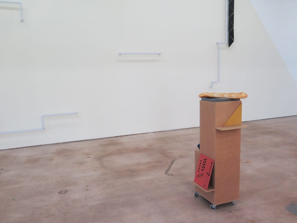 Die Konstellation Ritzmann/Solari zeigt eine Bereitschaft oder sogar den Willen zum Unerwarteten. Zweierlei Strukturen spinnen ihr Netz und lassen einen Zwischenraum des unbeschrieben Möglichen aufbrechen. Gleich einem Abtasten, einem Vorangehen im vorerst Unbekannten. Oder einem Erfühlen des Raumes, der vor einem liegt und zum gemeinsamen Gut wird. Das Verhältnis zwischen Kontrolle und deren Verlust, zwischen kalkulierten Rahmenbedingungen und Zufall erzeugt eine spannungsreiche Dynamik. Innerhalb des genau definierten Rahmens des Kunstraums stehen beide Arbeiten für sich selbst, werden durch die Gegenüberstellung jedoch zugleich in ihrer ursprünglichen Form verändert und reagieren aufeinander. Ein Bruch entsteht, der zeitgleich Übergang und Prozess sein kann und verschiedene Zugänge, Verknüpfungsmöglichkeiten und Schnittstellen zulässt. Was zu erwarten ist: ein Experiment, das sich aus Einzelteilen/ Fragmenten (einander zugewandt) zusammensetzt.