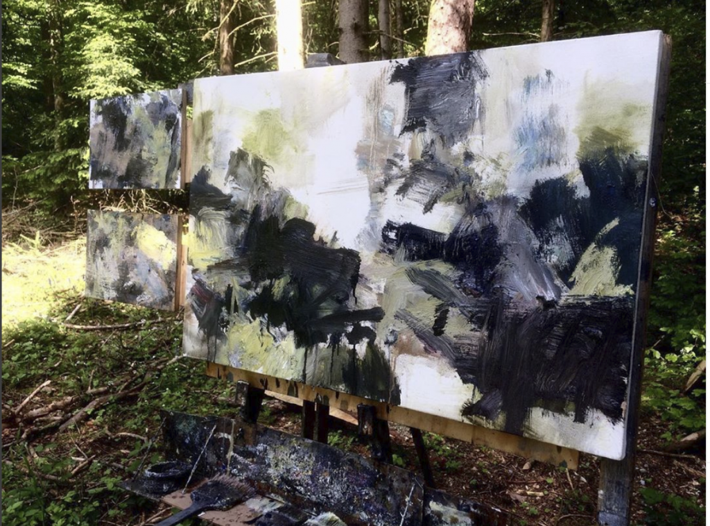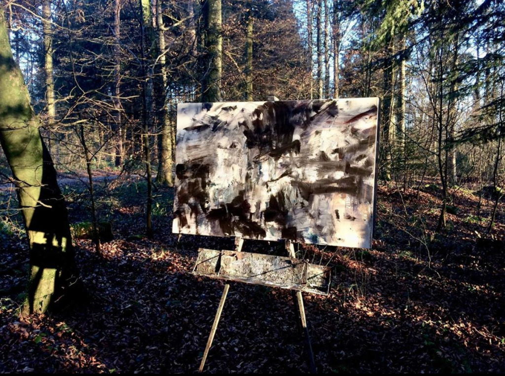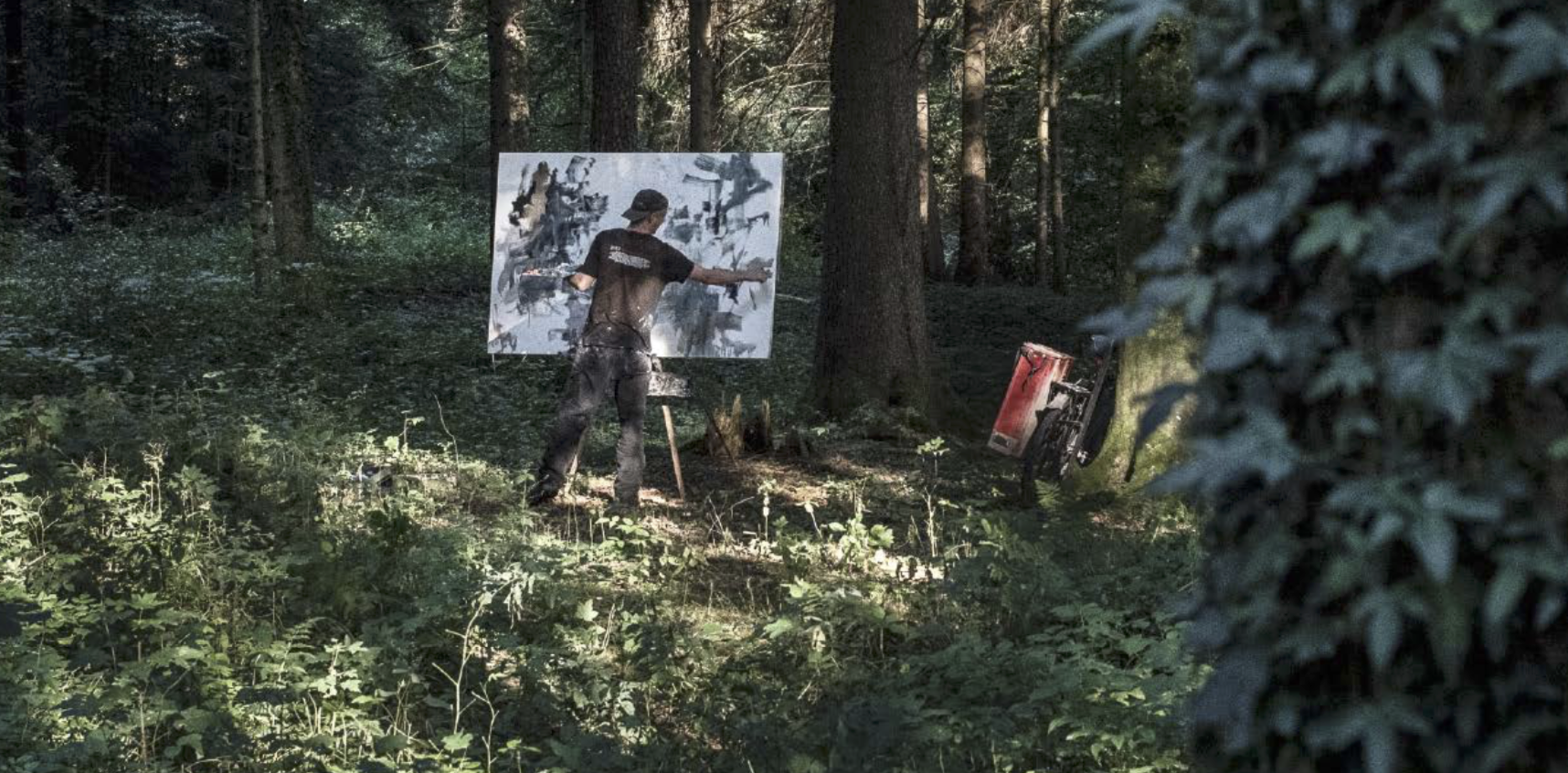 Reukaufs Bilder entstehen im immerwährenden Draussen und zeigen dieses als Ort der unzähligen bildlichen Möglichkeiten. Die Erhabenheit des Waldes ist es, was den Motiven Reukaufs die Stärke einschreibt, sie bereits voraussetzt, um sich daran abzuarbeiten, sie infrage zu stellen mit eigenen malerischen Mitteln. Reukauf arbeitet akribisch und bedacht, das sorgfältige Handwerk des Malers wird sichtbar. Ein unermüdlicher Rhythmus durchzieht seine Werke, ein starker Wille und die ungeheure Absicht, möglichst frei zu bleiben vom figurativen Darstellbarkeitsanspruch. Sein Malprozess beginnt weit vor der eigentlichen Fahrt in den Wald. Jede Leinwand bearbeitet er zuvor in einem eigenen Verfahren, präpariert sie mit Schichten von Kreidegrund, damit sie eine besonders glatte, dabei aufnehmbare Textur erhalten. Im Anschluss folgt der immer wiederkehrende Gang in den Wald. Mit seinem Fahrrad, umgebaut für den Transport, fährt Martin Reukauf mit Leinwand, Staffelei und Farben durch eine Tiefe von Licht, Geräuschen, Bewegungen und findet dort im Wald Bildhaftigkeit.