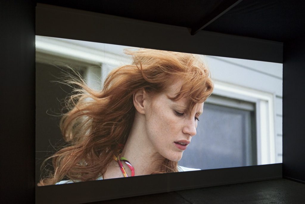 Fast hat man das Gefühl, etwas zu betrachten, das nicht zum Sehen bestimmt ist, etwas Verstecktes und Unbeobachtetes, neu Aufgespürtes. Ruhig und nah scheinen die Personen, die im Fokus der Aufnahmen stehen. Andächtig betrachtet man diese Gesichter, die ins Leere blicken, aus dem Bild heraus. Was klar deutlich wird: Dies sind keine Fotografien. Die FILMSTILLS zeigen ihren filmischen Ursprung deutlich, denn es sind perfekt inszenierte und doch “unbemerkte” Ausschnitte von nachgestellter Realität, festgesetzt durch einen Kameramann. So einprägsam und stark die gezeigten Film-Bilder sind, so wird gleichzeitig ihre Flüchtigkeit und “Nicht (Er-)Fassbarkeit” deutlich. Die Eigenschaft des Dazwischenseins wird von Gabi nicht nur motivisch, sondern auch in der gewählten Präsentationsform aufgegriffen. Die FILMSTILLS sind nicht auf Fotopapier oder Leinwand gedruckt, stattdessen werden sie projiziert; ihre haptische Nicht-Existenz bleibt erhalten.