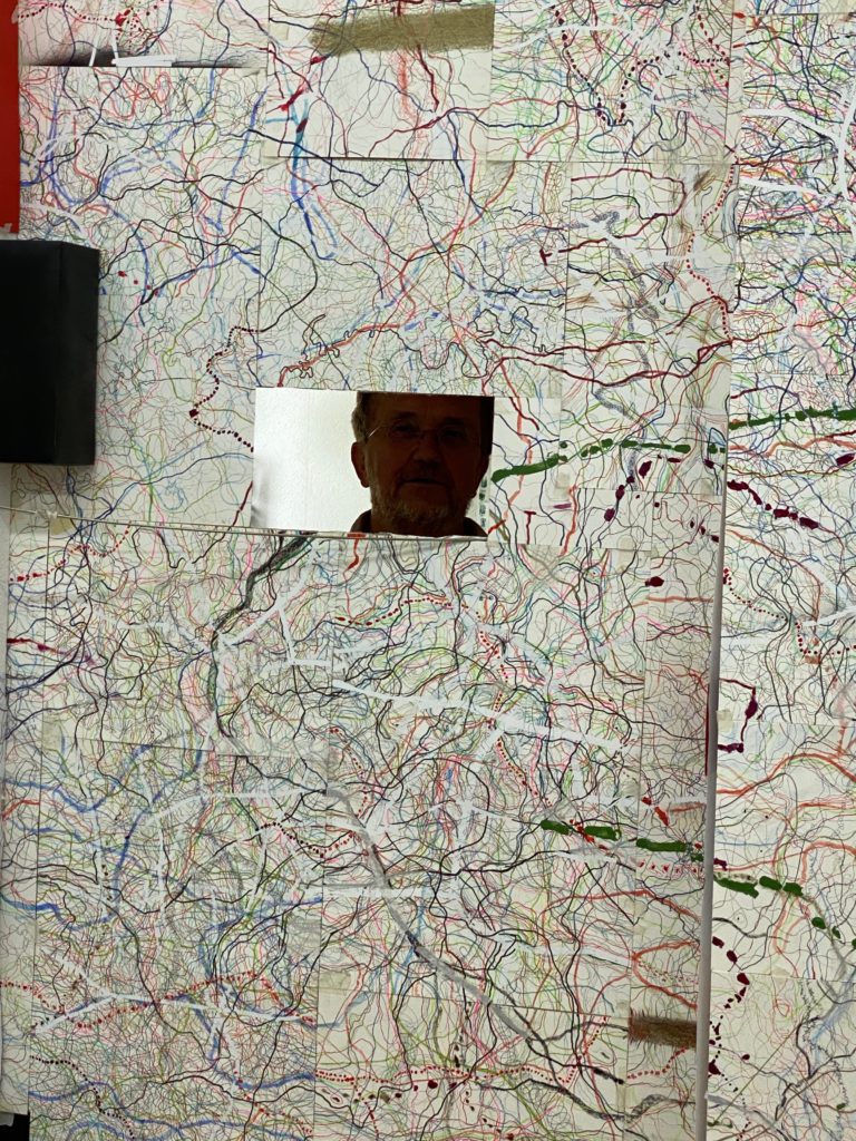 Durch den Prozess fortwährender Vergrösserung und Kopie entstehen Farbmuster, langgezogene schwarze Flecken, die an animalische Prints erinnern. Der aktuelle Augenblick (der Blick, den wir auf die Wand werfen) basiert auf Spuren und Ergebnissen von anderen Bildern. A Stream of Life. Inhalte überlagern und verselbstständigen sich.