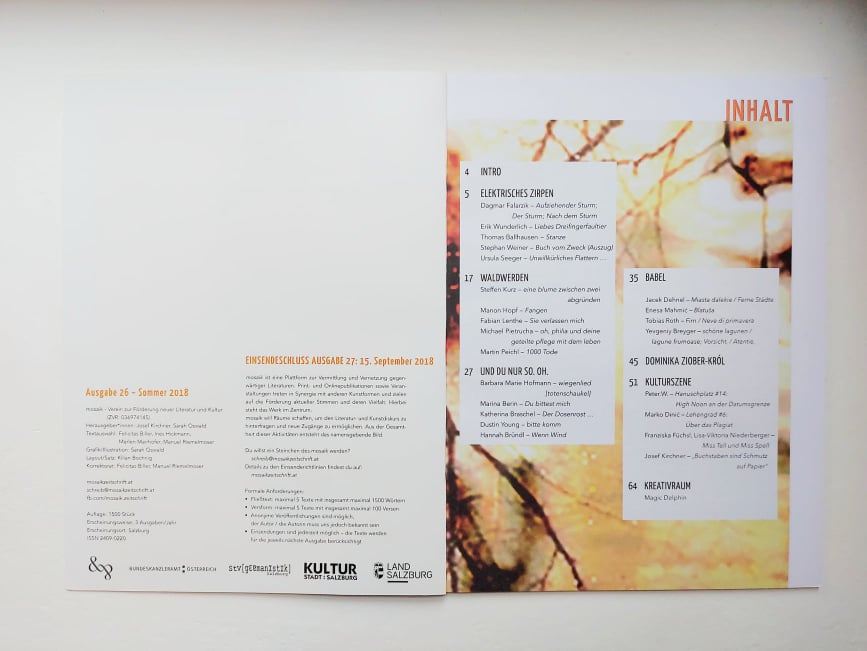 Lyrik-Publikation in Mosaik-Magazin: Zeitschrift für Literatur und Kultur Ausgabe 26/2018